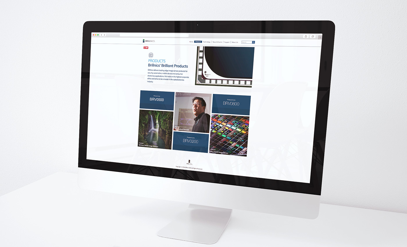 イメージセンサの半導体を開発するブリルニクス株式会社様のロゴ、web、名刺、ステーショナリーなど、一連のブランディングデザインを担当させていただきました。