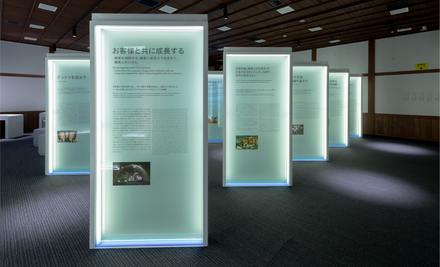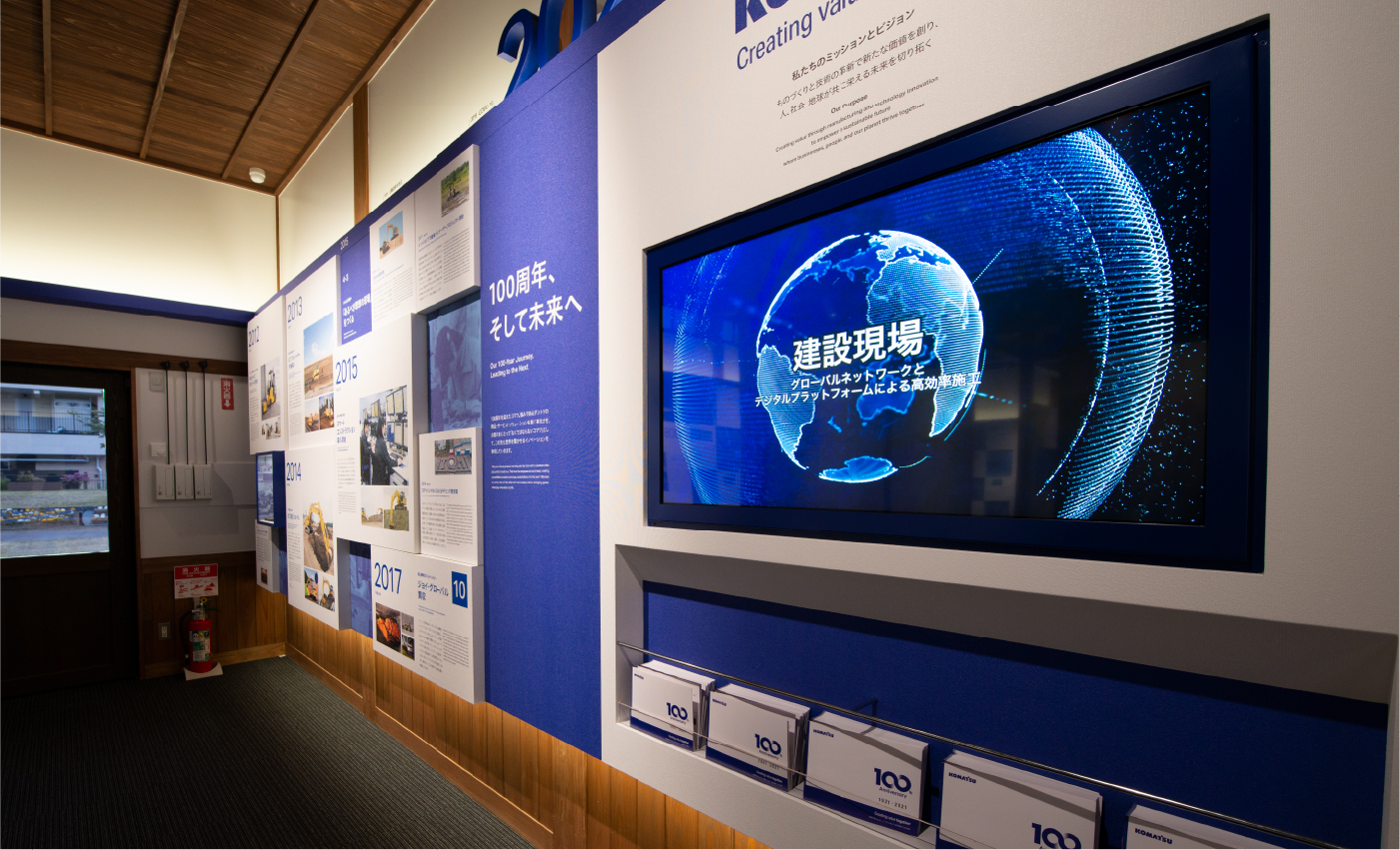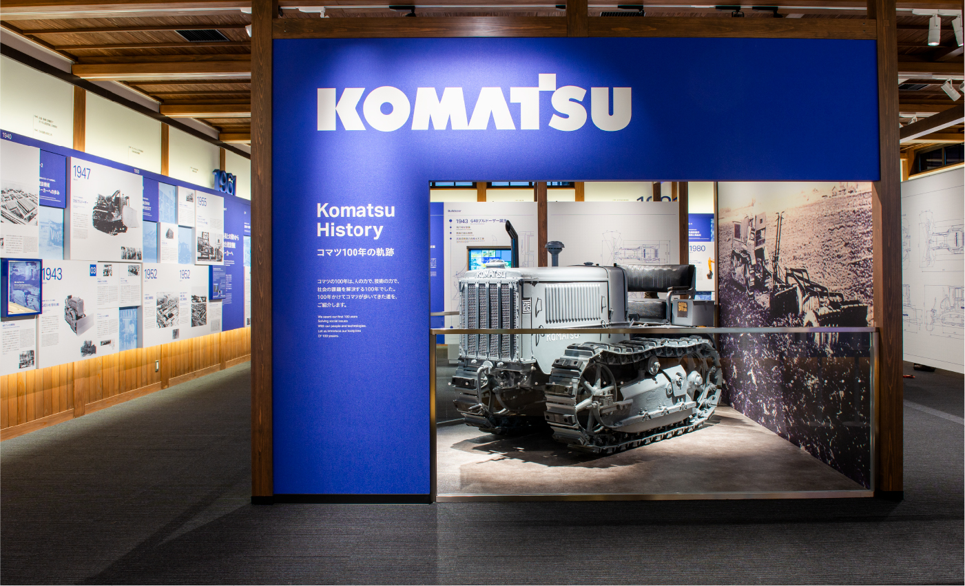創立100周年を記念して、発祥の地・石川県小松市にある「こまつの杜」のリニューアルが実施され、園内施設のうち、コマツの技術や歴史に触れる「わくわくコマツ歴史館」のリニューアル展示、演出グラフィックを担当させていただきました。
